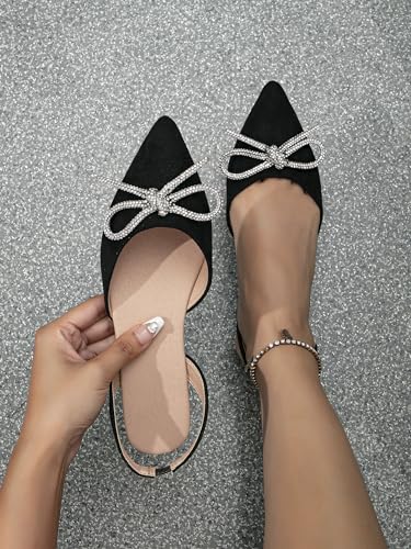 HOT ! SweatyRocks Women's Rhinestone Pointed Toe Flats Sparkly Bow Decor Flats Dress Shoes