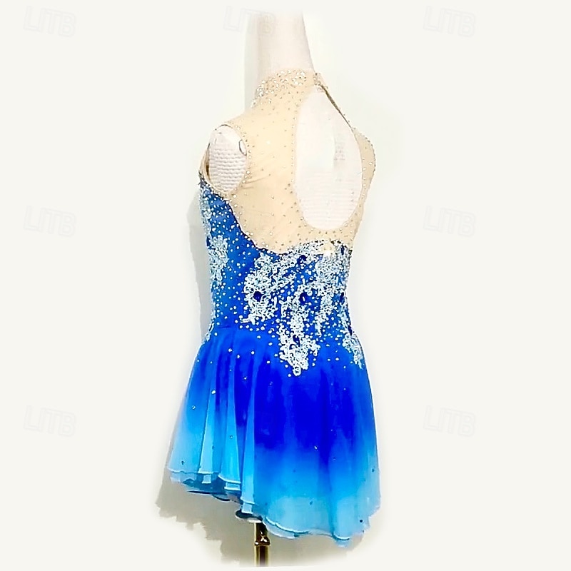 More information about Figure Skating Dress Women's Girls' Ice Skating Dress Blue Patchwork Mesh High Elasticity Training Competition Skating Wear Classic Crystal / Rhinestone Sleeveless Ice Skating Figure Skating