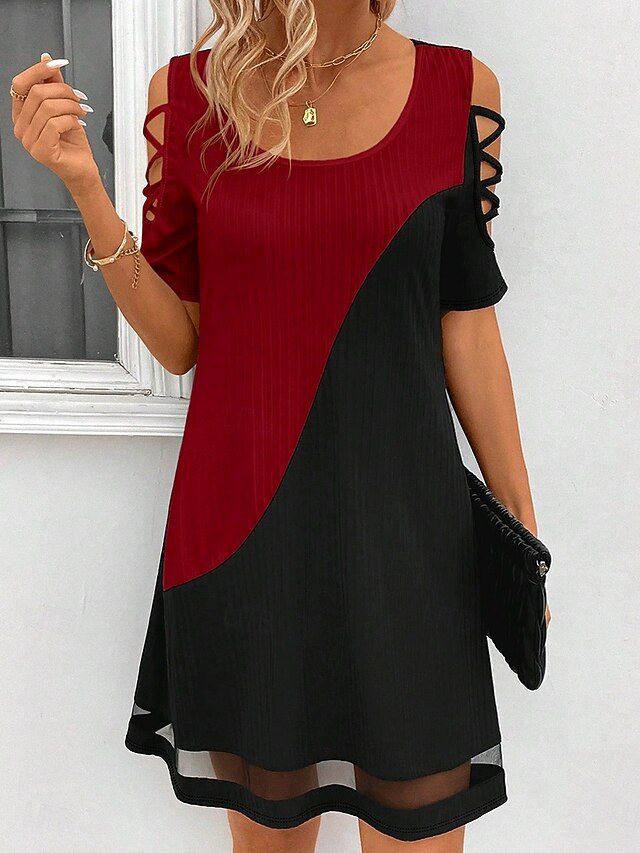 Women's Midi Dress A Line Dress Summer Dress Elegant Vintage Stylish Home Party Holiday Loose Fit Solid Color Color Block Short Sleeve Crew Neck Black And White Light Pink Yellow Red Summer Spring 2