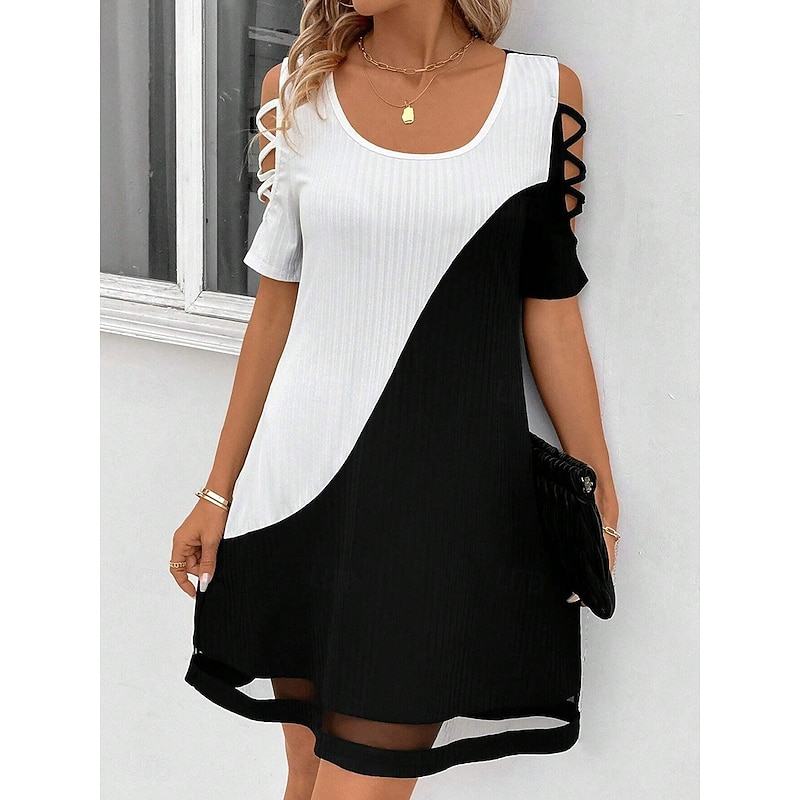 More information about Women's Midi Dress A Line Dress Summer Dress Elegant Vintage Stylish Home Party Holiday Loose Fit Solid Color Color Block Short Sleeve Crew Neck Black And White Light Pink Yellow Red Summer Spring