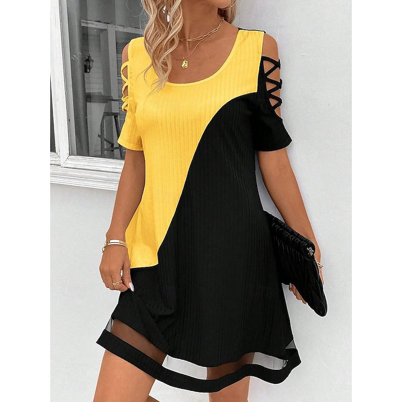 HOT ! Women's Midi Dress A Line Dress Summer Dress Elegant Vintage Stylish Home Party Holiday Loose Fit Solid Color Color Block Short Sleeve Crew Neck Black And White Light Pink Yellow Red Summer Spring