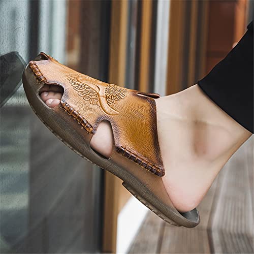 Genuine Leather Men's Sandals Classic Breathable Slip-On Sandals Men Casual Beach Shoes Outdoor Slippers(D,13code) 5