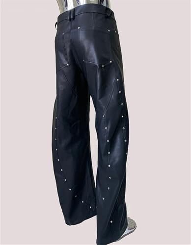 Men's Black Coating Pu Leather Twisted High Waist Rivet Punk Style Rock Fashion Slim Fit Trousers 6