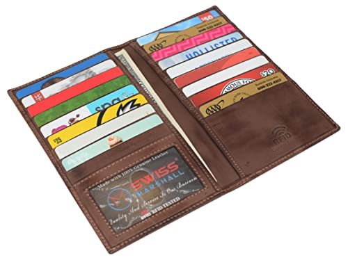 • MORE SLOTS MORE CONVENIENCE: Hold one of our Swiss Marshall wallets in your hands today, open it and discover its many slots and compartments. 20 slots for your credit or debit cards, your shopping cards, or gift shopping cards. 2 large bill compartments that will carry your money safely and 1 ID window. Place your ID or driver’s license