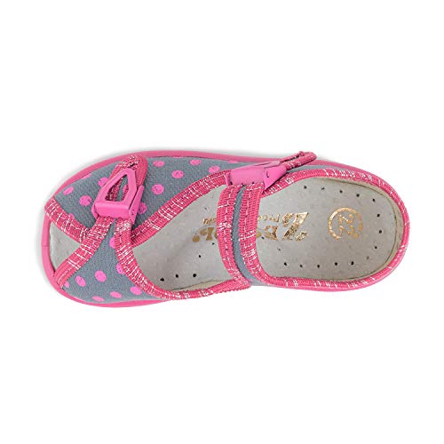 HOT ! Lucja 1857 Toddler Girls' Pink Polka Dots on Gray Metal Cam Lock Buckle Natural Canvas Sandal