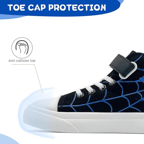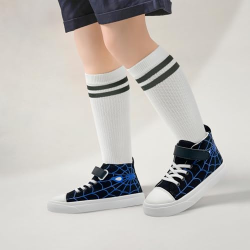 Sharllen Kid Canvas High Top Spider Sneakers Classic Adjustable Strap Lace up Shoes for Boys Girls Casual Tennis Kids Athletic Basketball Running Walking Shoes 4