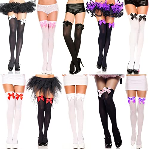 • Material: Opaque thigh highs stockings with satin bow is made of cotton fabric, soft and elastic, silky and more durable, the silky touch fits perfectly against the skin