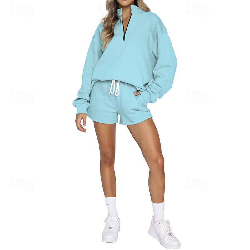 $28.99 - Women's Tracksuit Pullover Sweatshirt Sweat Shorts Drawstring Zipper Pocket Solid Colored Clothing Suit Fall Black Sky Blue Gym Workout Sports Windproof Long Sleeve Sport Activewear Micro-elastic 2025. Shop for cheap Tracksuits online? Buy at lightinthebox.com on sale today!