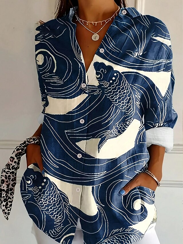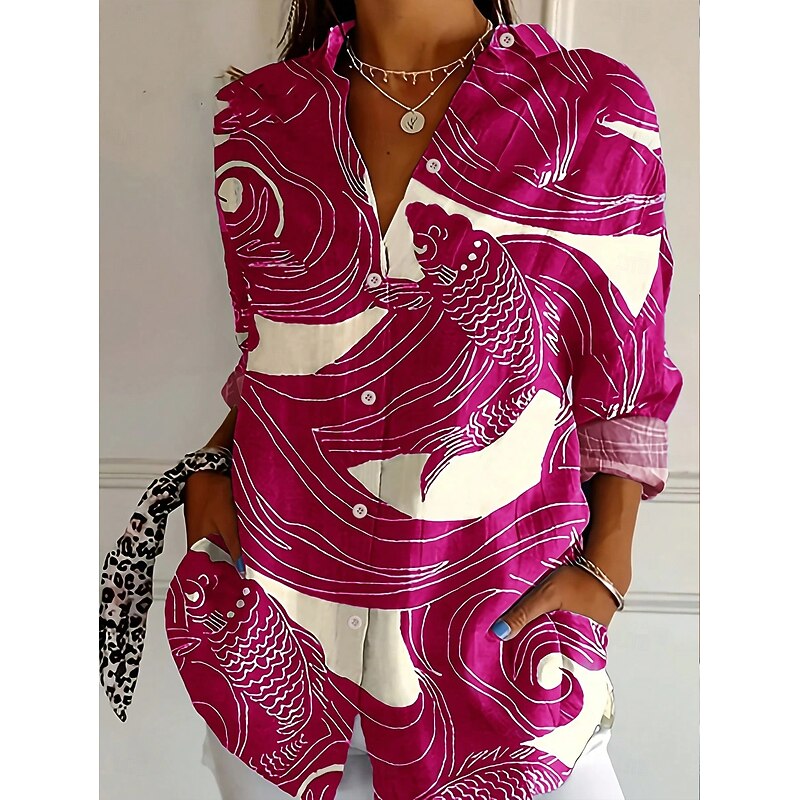 Women's Shirt Button Down Tunic Shirt Collar Long Sleeve Graphic Animal Elegant Vintage Tropical Regular Tops Daily Holiday Beach Wear s Print Black Pink Blue Spring Fall 2