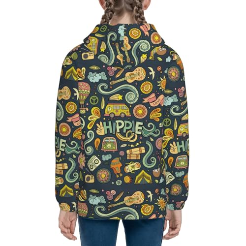 Colorful Hippie Kids Pullover Hoodies Boys Zip Up Sweatshirts Girls Athletic Clothes with Pocket 4