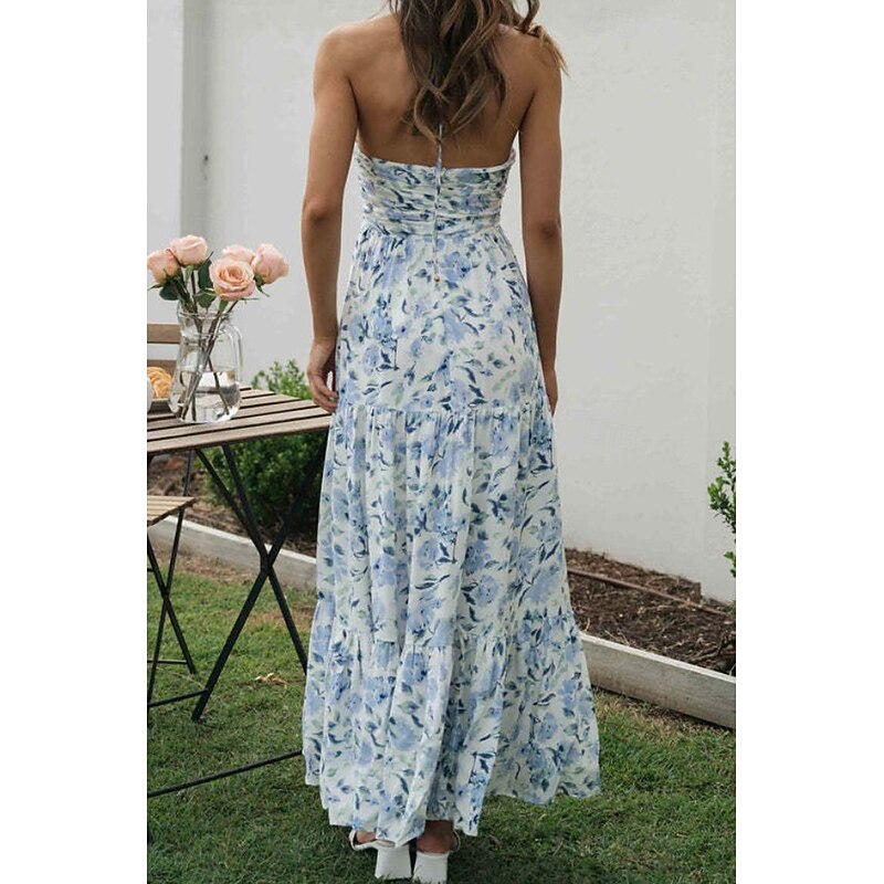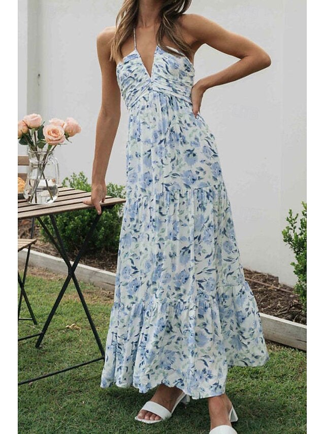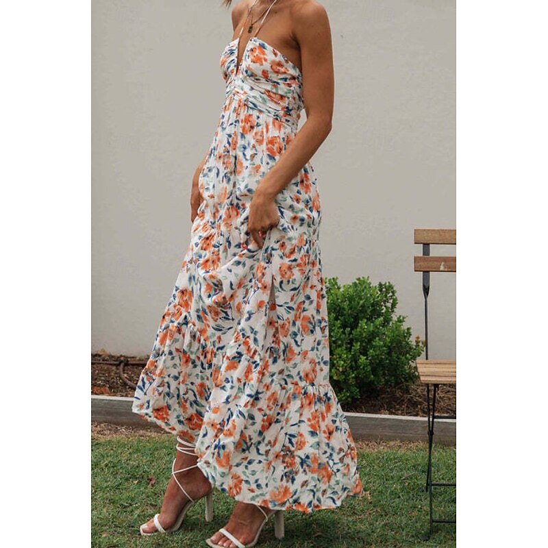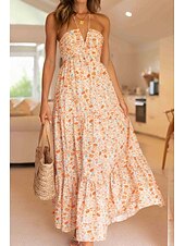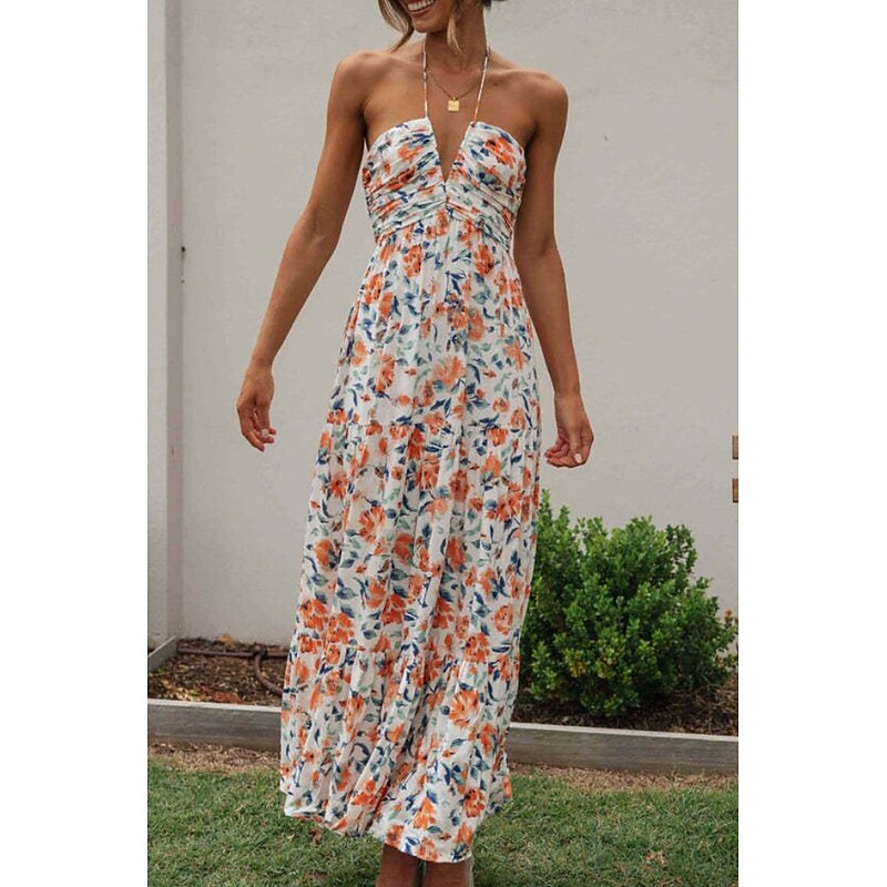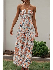 More information about Women's Midi Dress Graduation Dress Floral Dress Fashion Outdoor Vacation Holiday Regular Fit Flower Sleeveless Halter Neck Red Blue Orange Summer