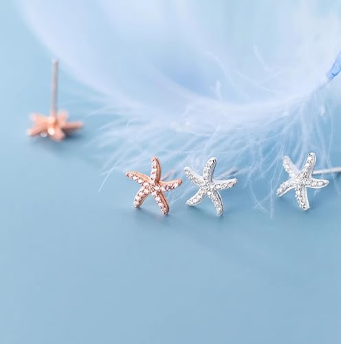Reffeer Solid 925 Sterling Silver CZ Starfish Stud Earrings for Women Teens Beach Stud Earrings Sea Fish Earrings