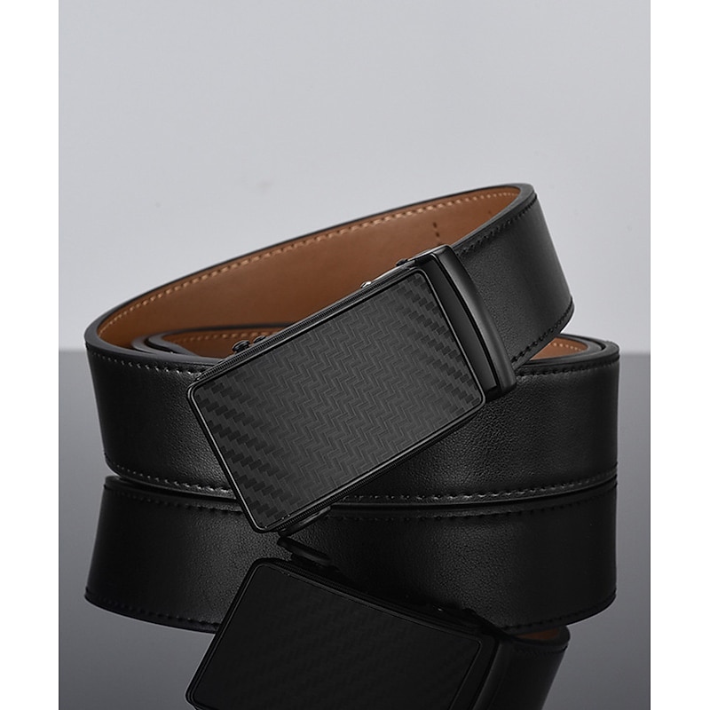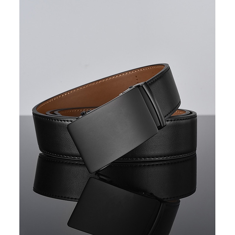 Men's Leather Belt 35mm Wide Ratchet Belt Dress Belt Black Cowhide sleek Casual Gentleman Plain Meet Almost Any Occasion and Outfit