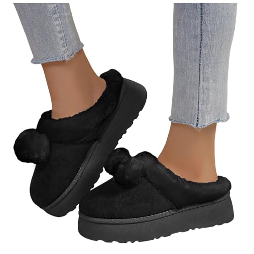 Fuzzy Platform Slippers for Women Casual Winter House Slippers Cozy Shoes with Memory Foam Indoor Outdoor Bedroom Slip On heated Fluffy Suede snug Non-Slip Plush Cotton Slipper