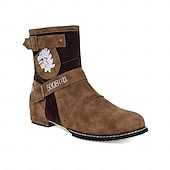 More information about Men's Brown Suede Biker Ankle Boots with Buckle Straps and Lion Emblem – Retro Steampunk Cosplay Boots for Halloween, Parties, and Daily Wear
