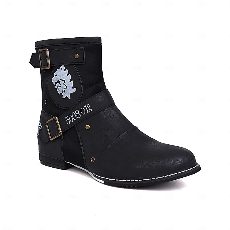 Men's Brown Suede Biker Ankle Boots with Buckle Straps and Lion Emblem – Retro Steampunk Cosplay Boots for Halloween, Parties, and Daily Wear 4