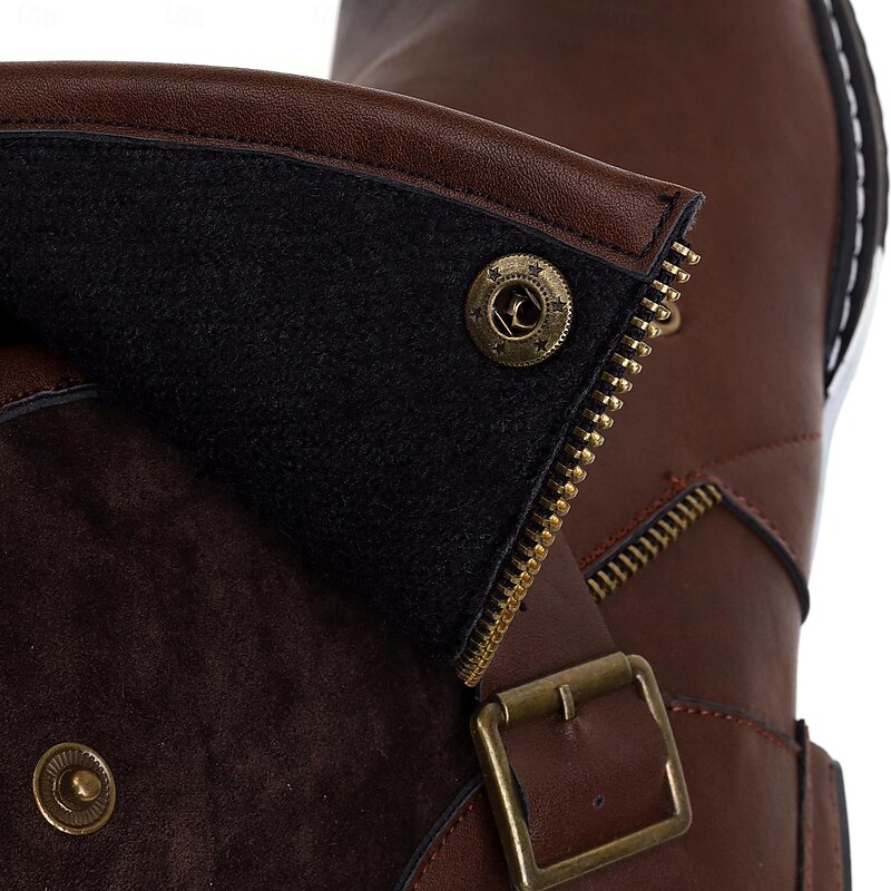 Men's Brown Suede Biker Ankle Boots with Buckle Straps and Lion Emblem – Retro Steampunk Cosplay Boots for Halloween, Parties, and Daily Wear 12