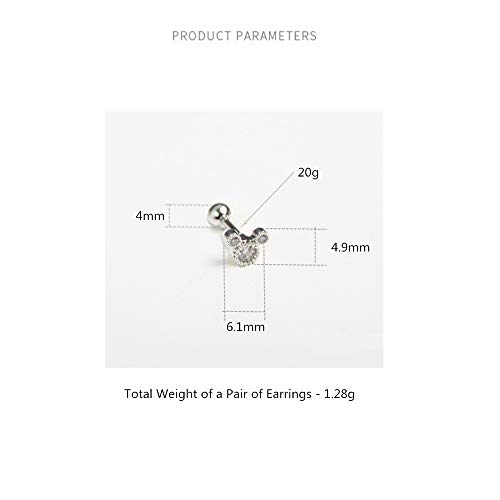 HOT ! Tiny Cute Mouse Stud Sterling Silver Earrings for Women Girls Cubic Zirconia Mini Small 20g Barbell Ball Studs Cartilage Tragus 4 mm Bead Screw Back Piercing Body Jewelry (Silver)