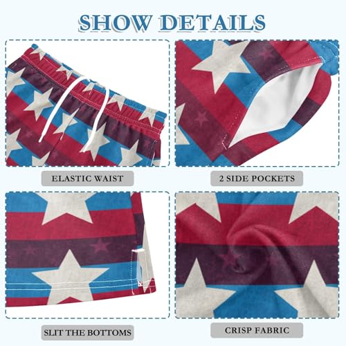 CHIFIGNO Stars Red Blue Stripes Youth Boys Thick Summer Clothes Boys Casual Shorts with Elastic Waist with Pockets XS 4