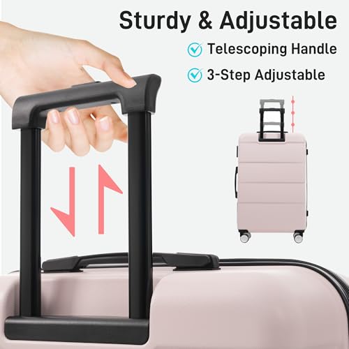• Comfortable Carry & Adjustable Handle: The silicone-lined pull handle ensures a comfortable grip, while the 3-step telescoping handle adjusts to your height for easy control. Lightweight yet sturdy, these hard shell suitcases make lifting and moving through stairs, trains, and airports a breeze