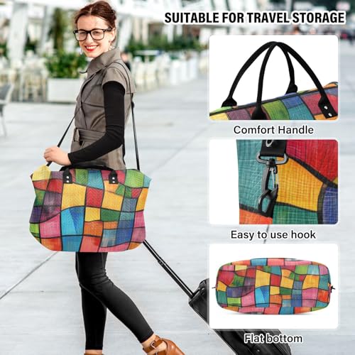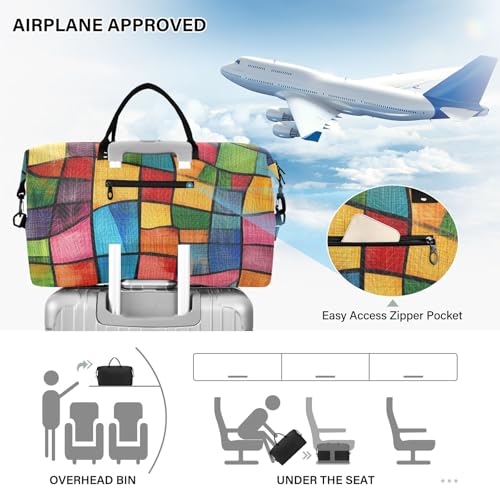 HOT ! Bolaz Duffle Bag for Travel-Colorful Geometry Weekender Overnight Bag with Wet Pocket for Women,Large Carry On Airport Bag with Toiletry Bag