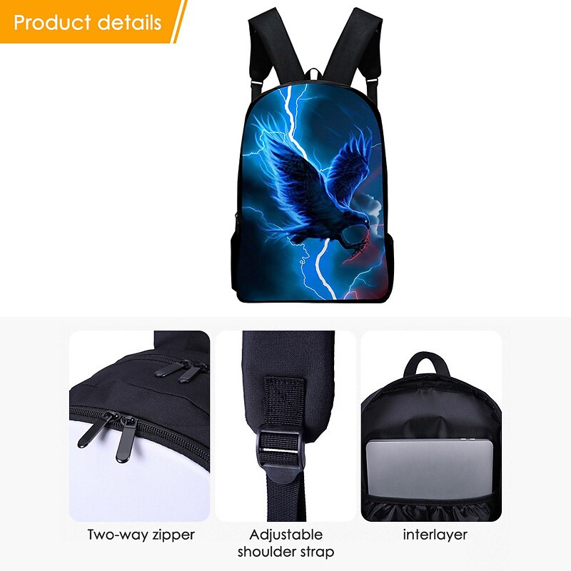 Electric Red Hawk Backpack for Teens – Fierce Lightning Bird Print School Bag for Boys and Girls, Large Capacity 3