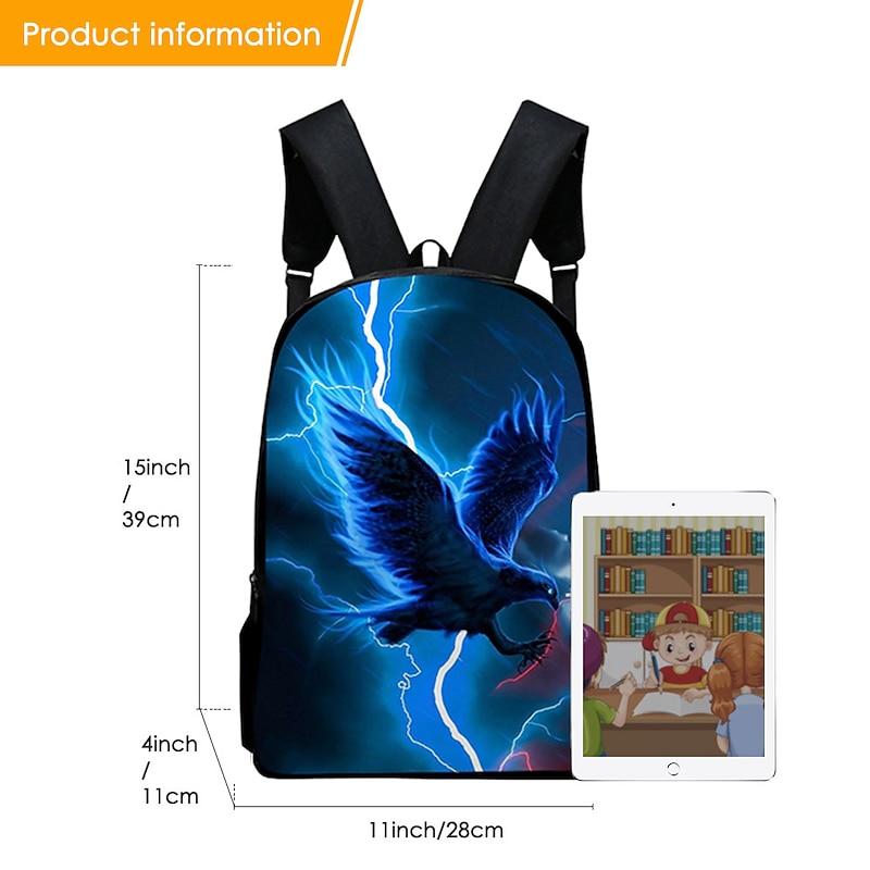 More information about Electric Red Hawk Backpack for Teens – Fierce Lightning Bird Print School Bag for Boys and Girls, Large Capacity