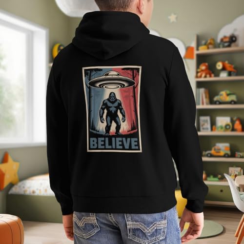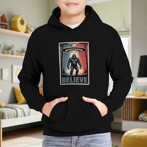 HOT ! Kids Believe Bigfoot Believe Ufo And Aliens Boys Girls Lightweight Kangaroo Pocket Fleece Hoodies