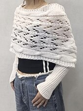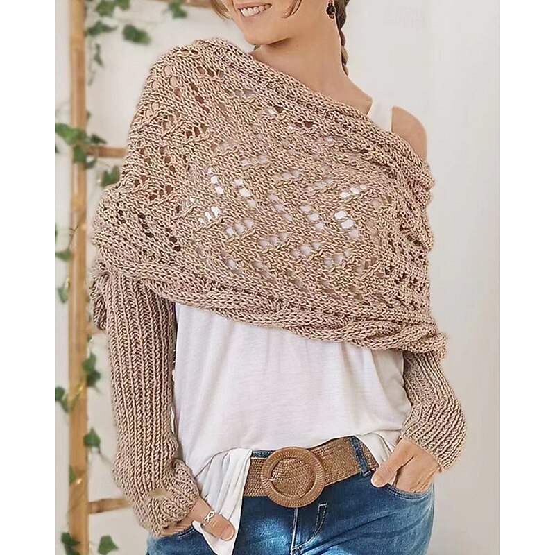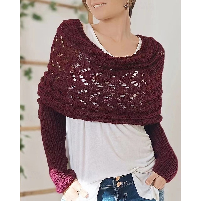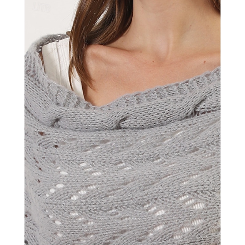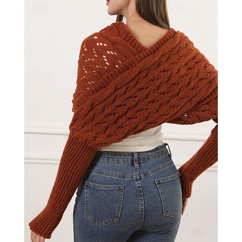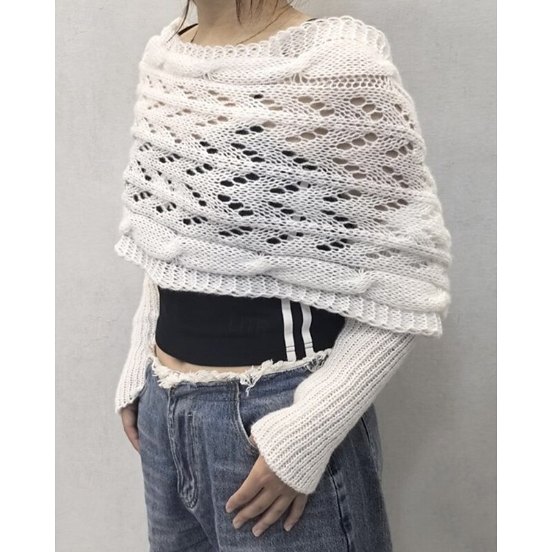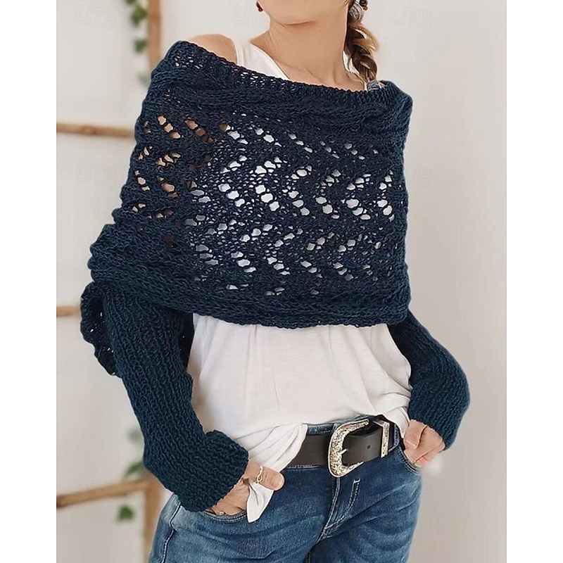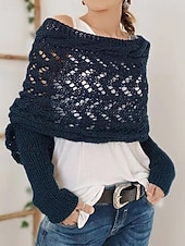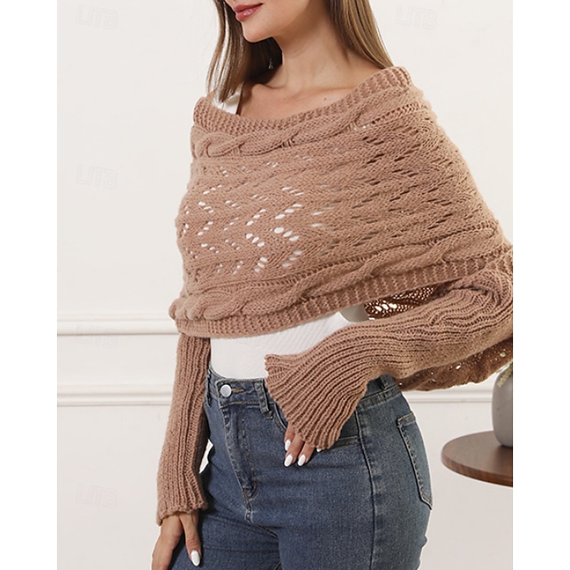 More information about Women's Sweater Shrug Streetwear Casual Solid Color Boat Neck Hollow Out Knitted Long Sleeve Crop Tops Knit Holiday Going out Weekend Wine Red Black Fall Winter