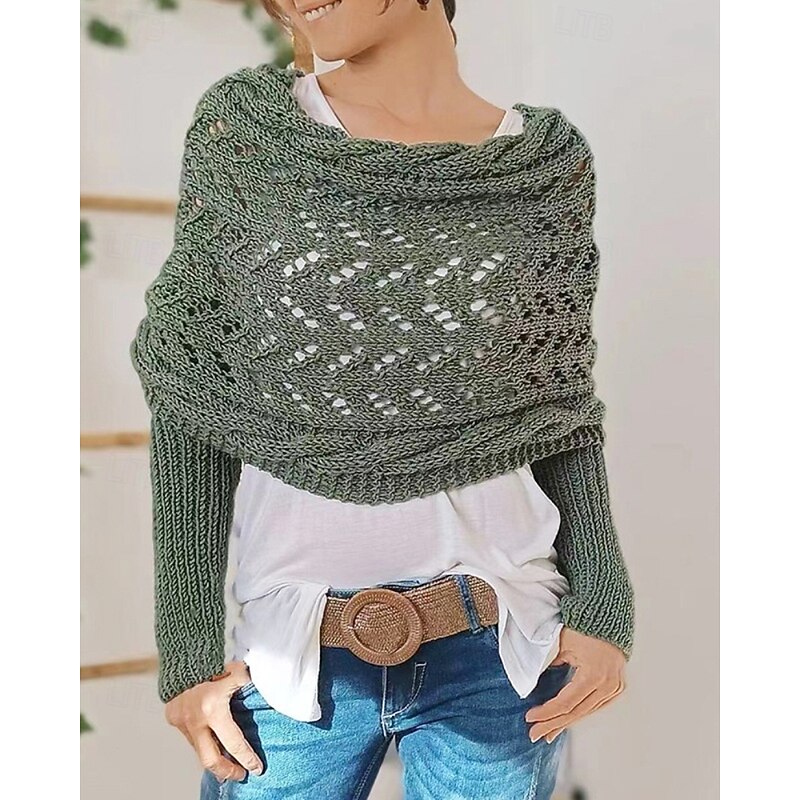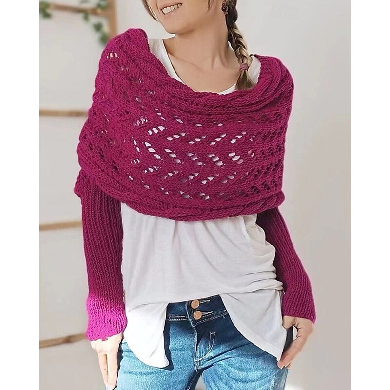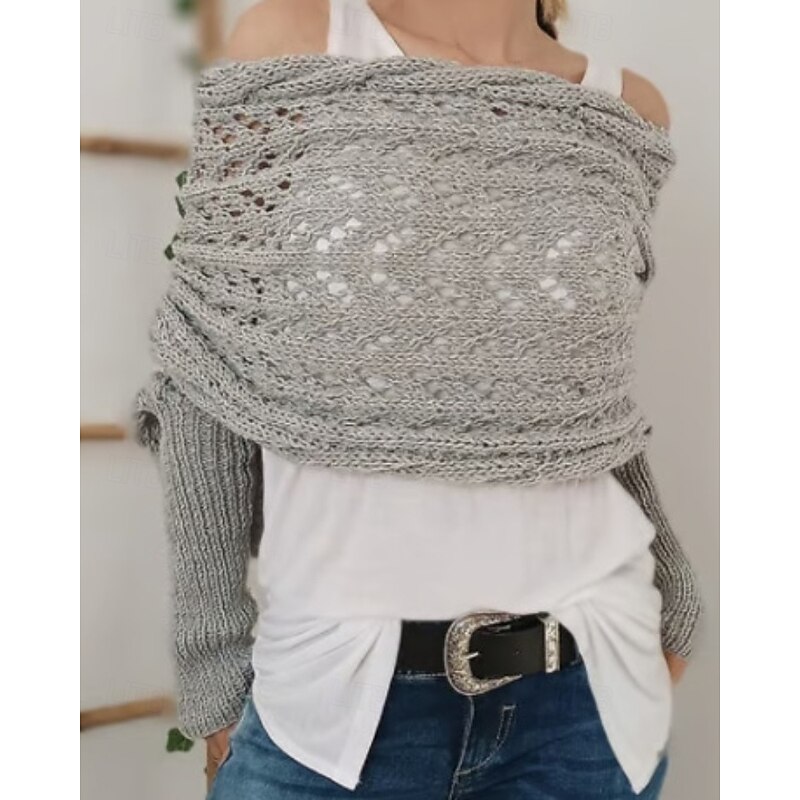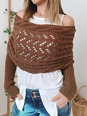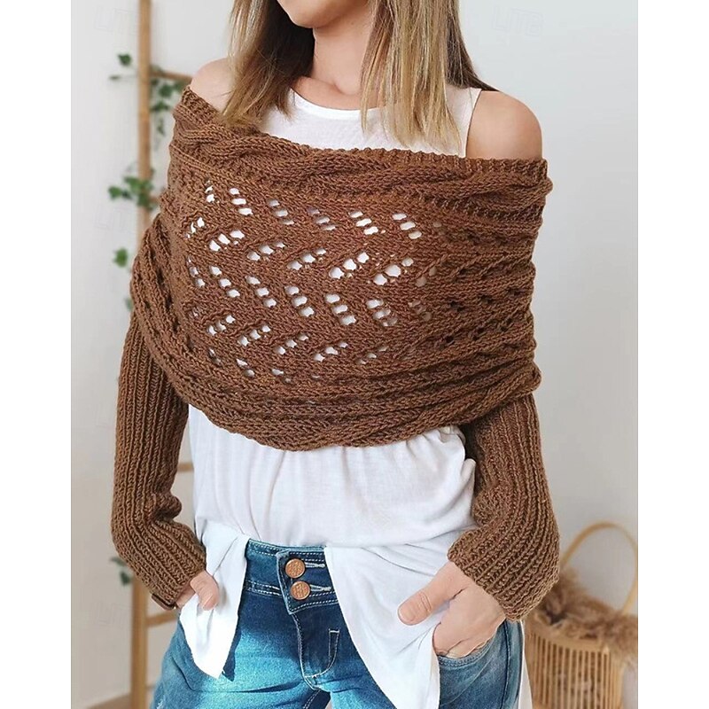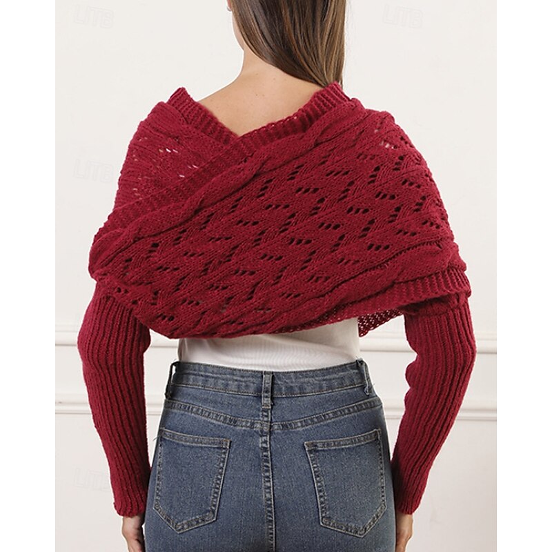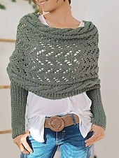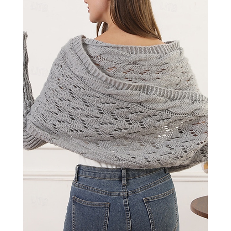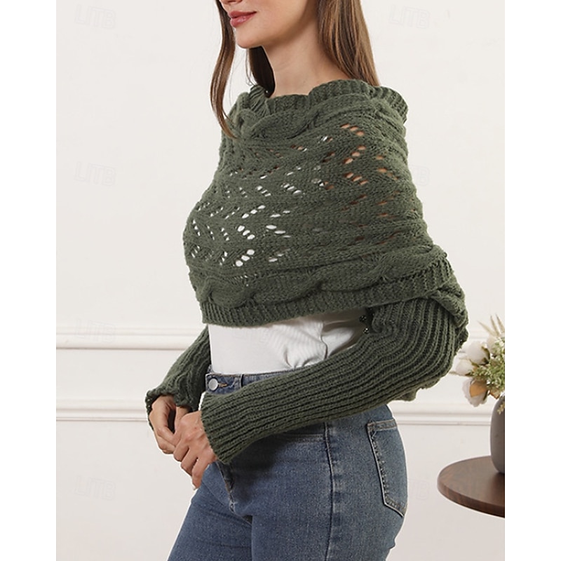 More information about Women's Sweater Shrug Streetwear Casual Solid Color Boat Neck Hollow Out Knitted Long Sleeve Crop Tops Knit Holiday Going out Weekend Wine Red Black Fall Winter
