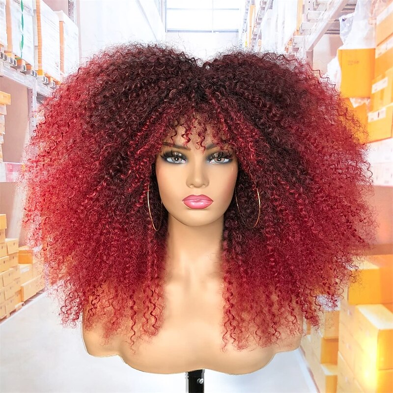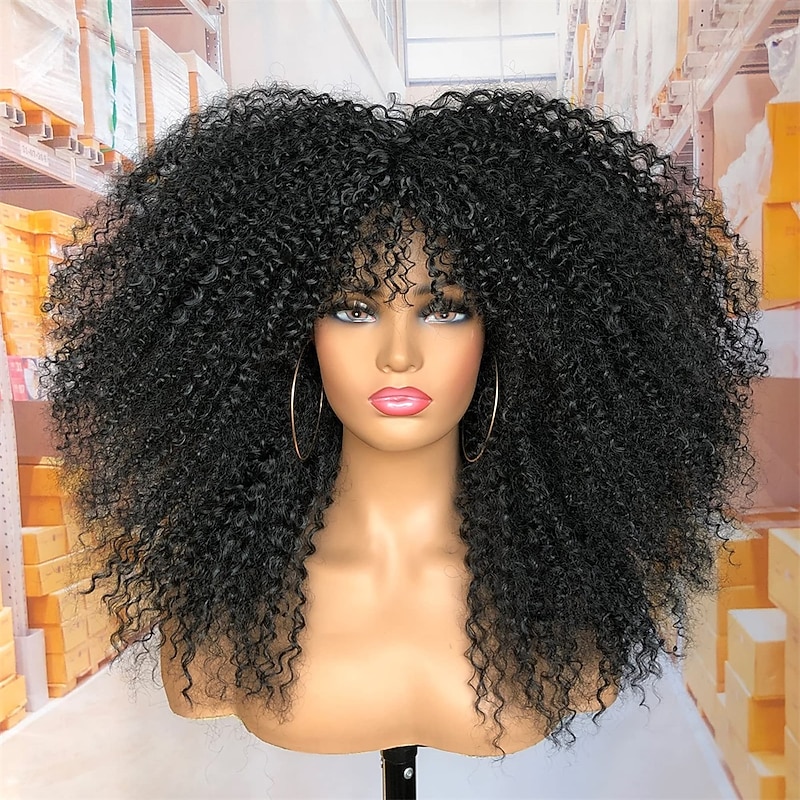 $24.99 - 18Inch Long Curly Wig With Bangs for Black Women Afro Bomb Kinky Curly Wig Fluffy and Soft Synthetic Hair 2025. Shop for cheap Black & African Wigs online? Buy at lightinthebox.com on sale today!
