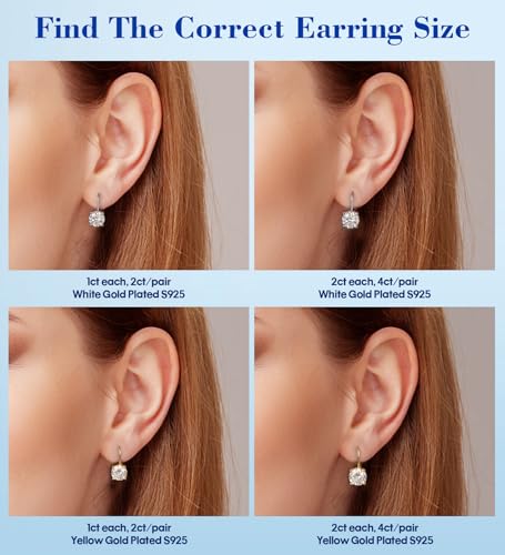 • 【Uncompromising Craftsmanship】Each pair features 1-2 carat moissanite stones per ear (2-4 carats total), hand-set in lustrous 18k white gold-plated sterling silver for lasting brilliance. With exceptional clarity and a mirror-like polish, the stones dance with light, while the secure, durable setting ensures effortless wear. A testament to precision, every detail reflects luxury you can trust.