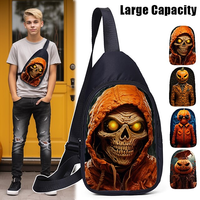 HOT ! Large Capacity Halloween Crossbody Sling Bag - Spooky Skull and Pumpkin Designs for Teens (4 Patterns Available)