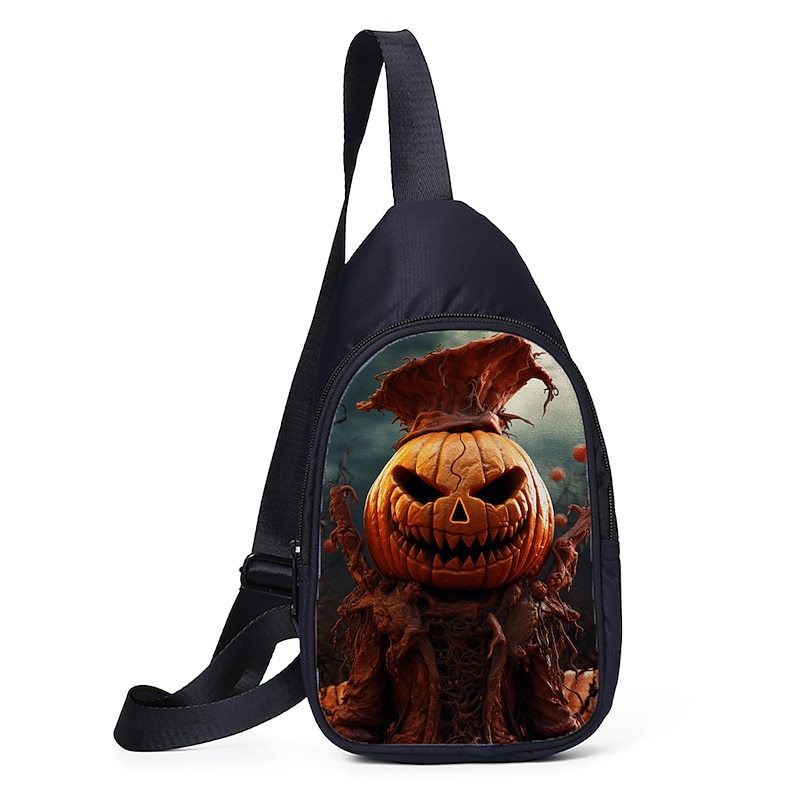 Large Capacity Halloween Crossbody Sling Bag - Spooky Skull and Pumpkin Designs for Teens (4 Patterns Available) 1