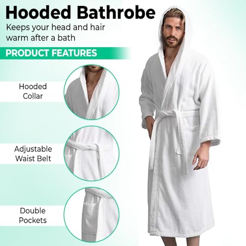 Men’s Hooded Bathrobe, 100% Cotton Terry Bathrobe, Spa Style Bath Robe, Absorbent Shower Robe, Lightweight Towel Bathrobes 6