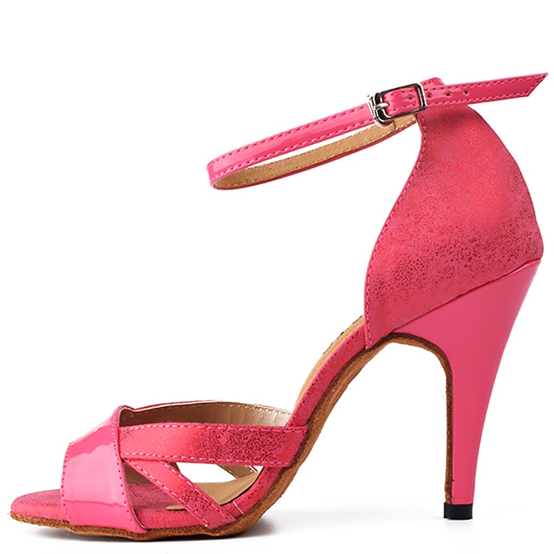 Highlights [Fabric] These women's Latin dance shoes are crafted with a luxurious blend of PU leather and satin, providing a subtle sheen and a comfortable wear that’s perfect for extended dance sessions. [Style] Designed with a sophisticated peep-toe style, these shoes feature a 2 1/2 inch Cuban heel that offers an elegant lift and a flattering silhouette. The comfortable, high-quality materials ensure you can dance confidently all night long. [Design Highlights] The shoes boast an eye-catching splicing embellishment and crisscross strap pattern, offering both a secure fit and a fashionable flair. An adjustable ankle strap with a buckle closure provides both stability and style, ensuring these shoes stay secure during energetic performances. [Occasions] Ideal for indoor performances, ChaCha, and other dance events, these sparkling shoes add a touch of glamour to any routine. Whether you're practicing your steps or performing on stage, these shoes are designed to impress. [Size Notice] Available in a range of sizes from US4-4.5 to US9.5-10, these shoes are crafted for adults and recommended to select your usual shoe size for the best fit.