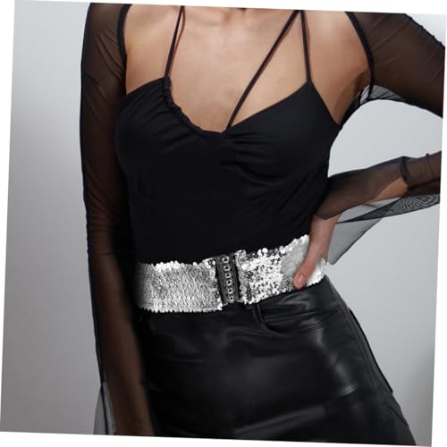 • Fashionable sparkle: the sequin design ensures you shine brightly on stage, making you the center of attention at any event,sequin elastic waist cincher,wide belt for dresses woman