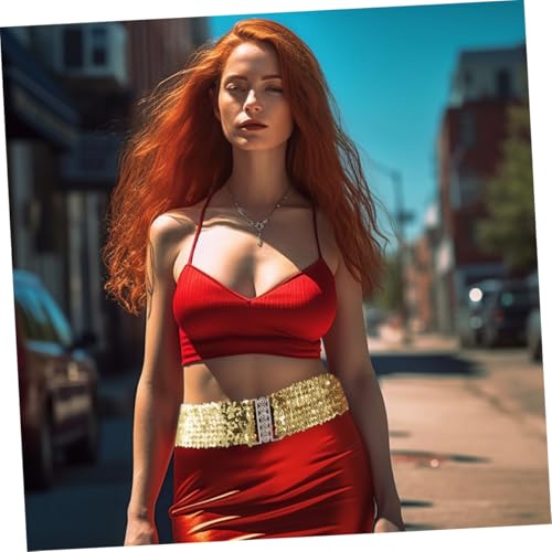 • Comfortable wide elastic belt: the wide elastic belt provides a comfortable fit, enhancing your curves and ensuring you look your,glittery gold elastic belt,performance sequin belt