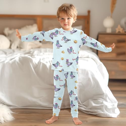 Pajama Sets Long Sleeve Cute Pigeons with Worms Pattern plush Comfy Sleepwear 2 Piece PJS 3-8T