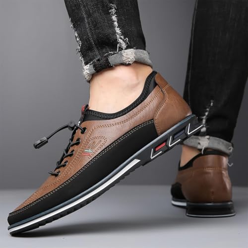 Mens Leather Loafers Business Dress Oxfords Casual Oxfords Lace-Up Lightweight Walking Sneakers Derby Shoes Comfortable Brown 7