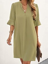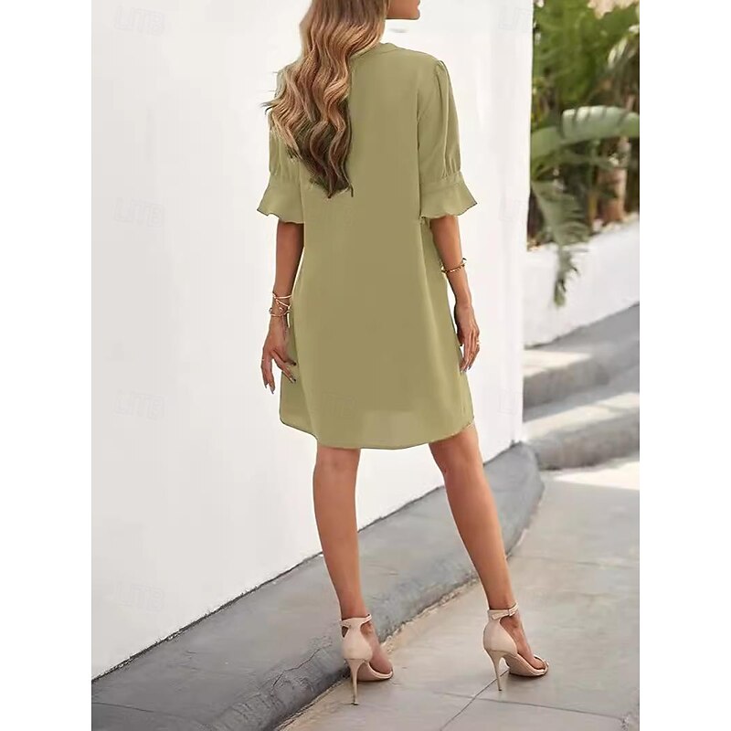 More information about Women's Work Dress A Line Dress Tunic Dress Fashion Office Workfashion Mini Dress Ruffle V Neck Half Sleeve Plain Loose Fit Blue Rose Beige Summer Spring S M L XL 2XL