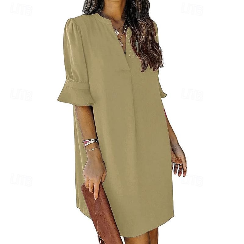 Women's Work Dress A Line Dress Tunic Dress Fashion Office Workfashion Mini Dress Ruffle V Neck Half Sleeve Plain Loose Fit Blue Rose Beige Summer Spring S M L XL 2XL