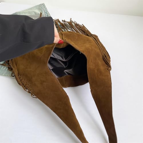 • ✅Suede Tassels Tote Handbag: The surface of the shoulder purse is suede, high-quality, wear-resistant, fashionable, unique, versatile. Perfect for wearing during casual to make you look more beautiful. Fashion, Cute, Beautiful shoulder crescent bag purse pairs perfectly with your outfit Cute Top-handle Bag: 17.7" x 0.4" x 11.4" / 45 * 10 * 29 (cm) (L*W*H).