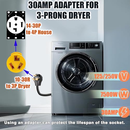 • 2.Strong power support: Supports a maximum current of 30 Amps, working voltage of 125V/250V (compatible with 240V), maximum power of 7500 watts. Satisfies the stable operation requirements of large-power appliances such as dryers, with reliable power transmission