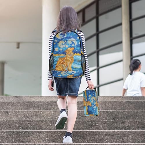School Backpack and Insulated Lunch Bag Set Teens Girls Boys Kids Schoolbag Set Golden Retriever Starry Night Backpack 4