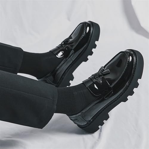 Mens Leather Slip-On Chunky Tassel Loafer Shoes Fashion Comfortable Round Toe Low Top Outdoor Walking Lug Sole Non-Slip Penny Loafers Business Dress Shoes for Men 6