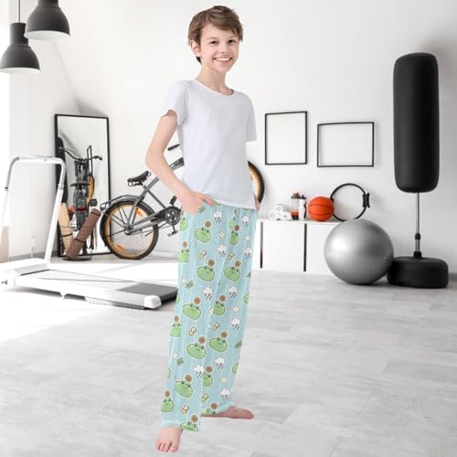 Boy's Lounge Pants Cute Frog Have Sunflower Head Kids Jogger Pants Elastic Waist Long Bottoms with Pockets 6-14 Y 4