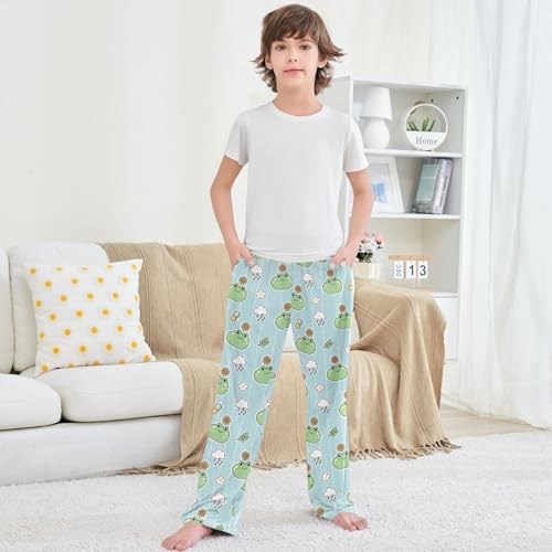 Boy's Lounge Pants Cute Frog Have Sunflower Head Kids Jogger Pants Elastic Waist Long Bottoms with Pockets 6-14 Y 6