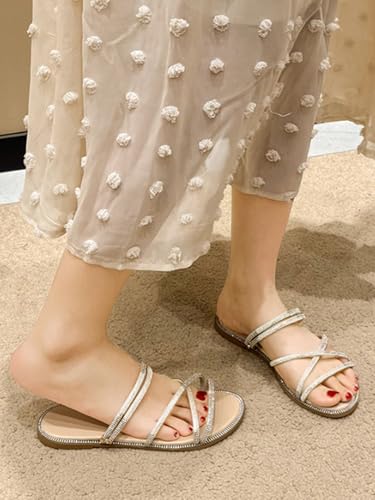Women's Glitter Rhinestone Flat Criss Cross Strappy Open Toe Sandals Slip On Slippers 6