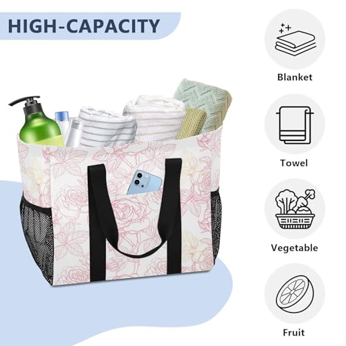 Elegant Rose Reusable Grocery Bags Large Tote Bag Waterproof Canvas Organizer for Beach Picnic Laundry Travel 7